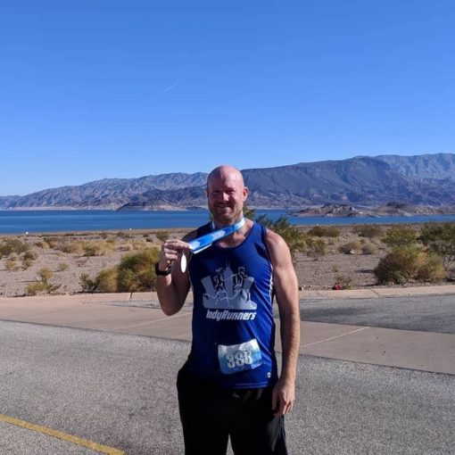 If you’ve spent any time at all around Indy Runners & Walkers, you’ve probably met Mark Nickerson: board secretary, consummate planner, enthusiastic cheer-squad member, smartphone photographer extraordinaire, and until very recently… a proud “never-marathoner.” His words, not mine.
